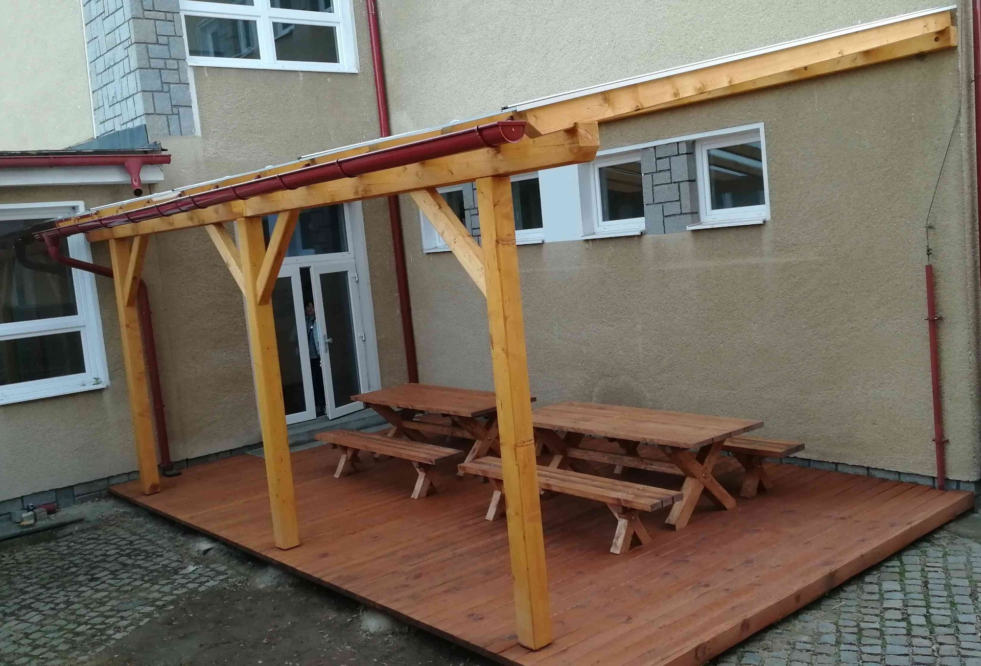 Venkovní učebna s nábytkem